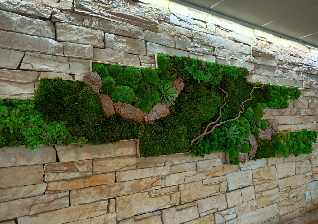Le savant mélange de différentes essences de bois , mousses stabilisées, lichens et ainsi que du feuillage stabilisé ou feuillage artificiel, permet de réaliser de créations uniques par leur relief, couleur et forme.