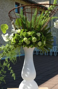 mariage vert et blanc anthurium, roses, asparagus, osier, floral design