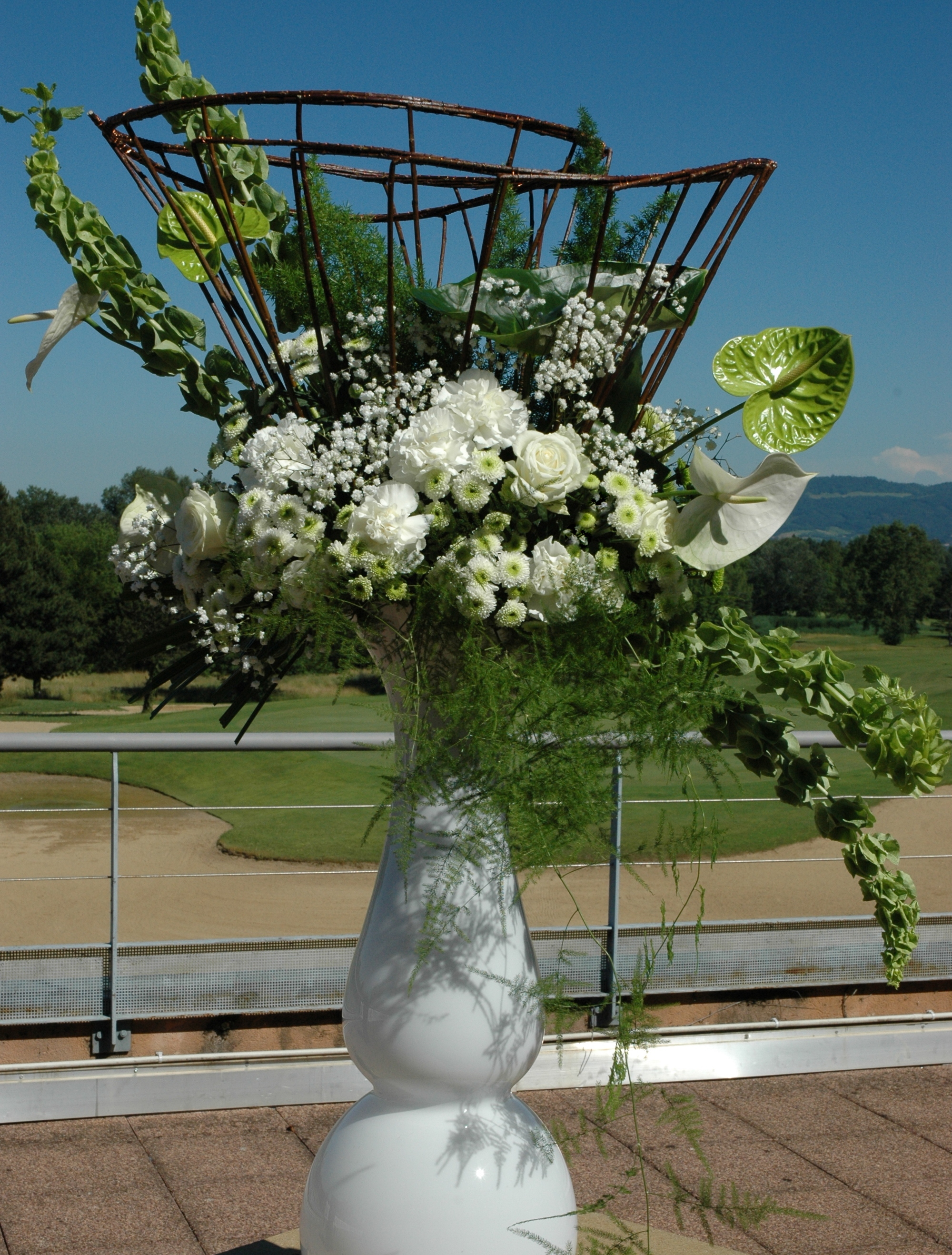 DECO DEGIO mariage vert blanc romantique elegant, rose, anthutium, osier